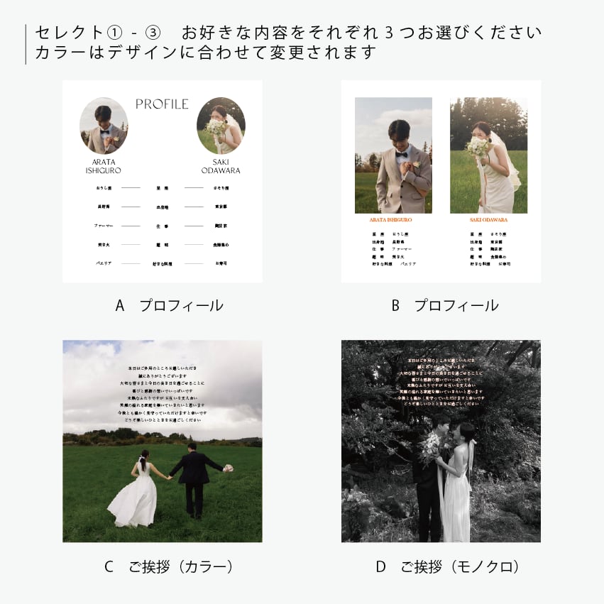 全6Pのちょうど良いボリューム感で、写真を大胆に配置したレイアウトなので、お二人の世界観を演出できます。