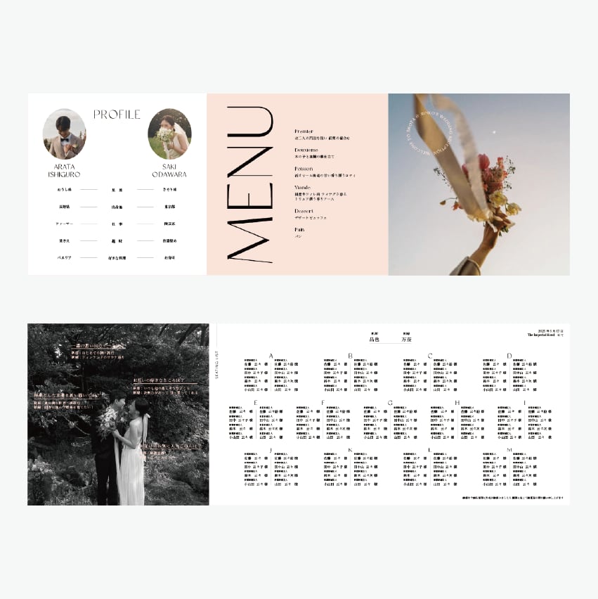 全6Pのちょうど良いボリューム感で、写真を大胆に配置したレイアウトなので、お二人の世界観を演出できます。