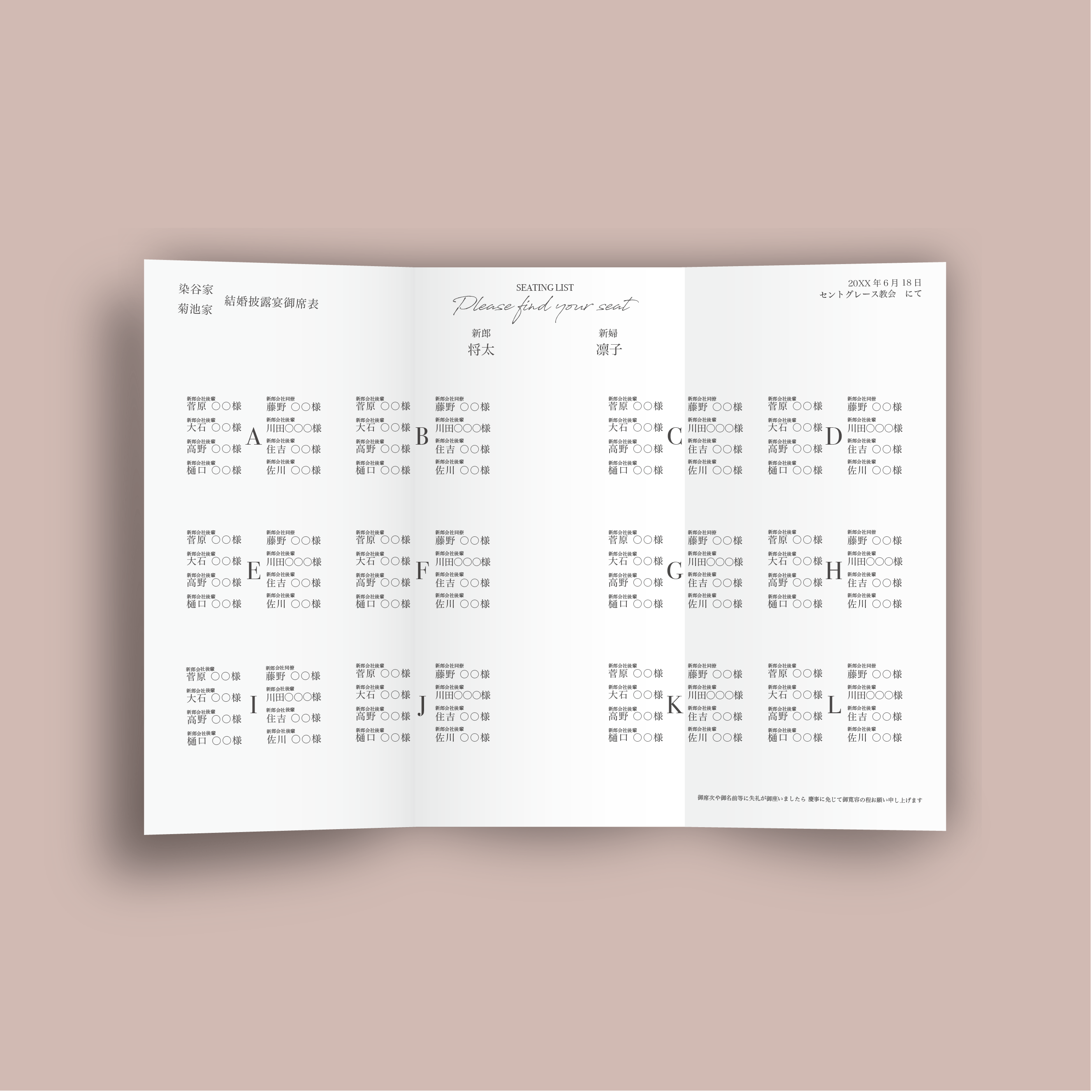 オリジナルの3つ折り席次表をお作りいたします。