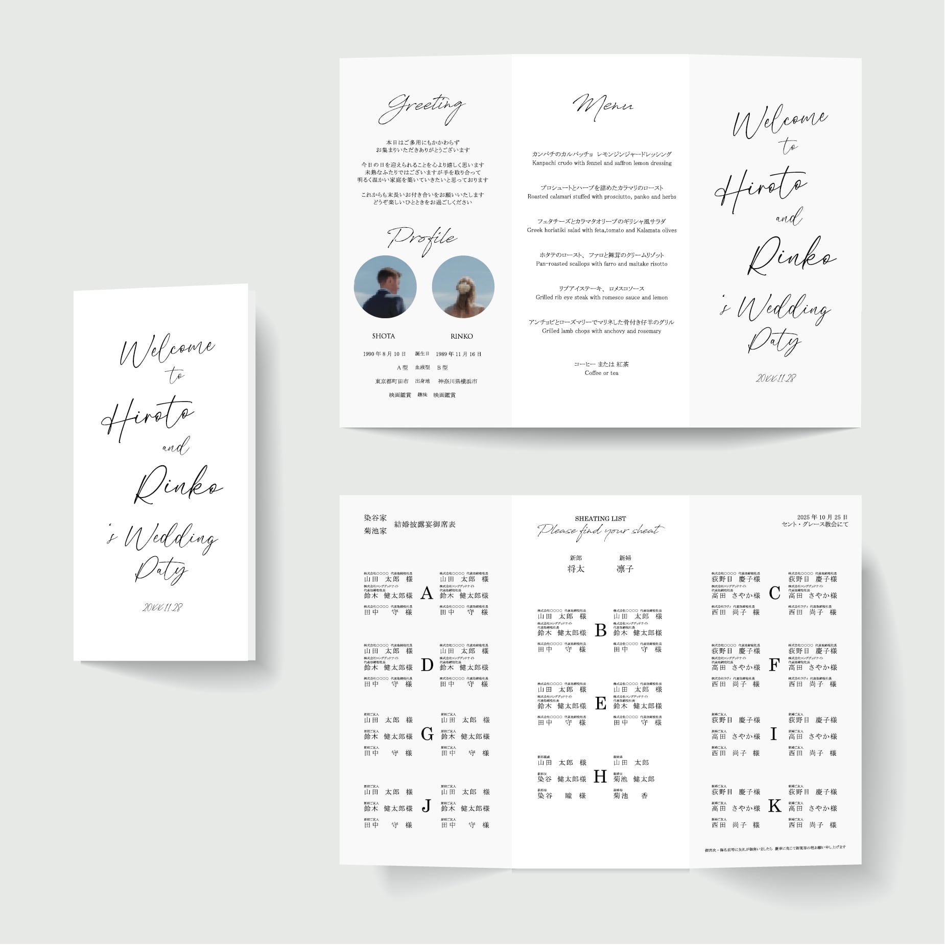 表紙 | ご挨拶+プロフィール | メニュー(or 無地)| 席次表